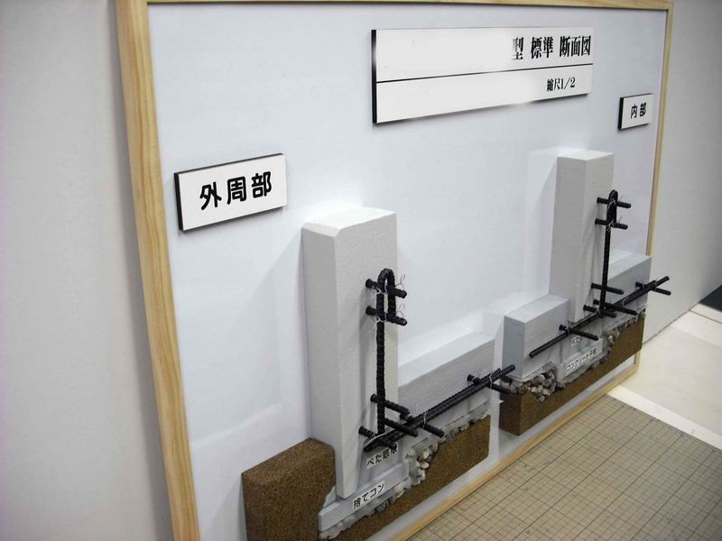 2011年04月11日 建築模型ねっと:基礎構造模型(壁掛けタイプ) 先日、壁掛け用の構造模型を作りました。横幅90cm×高さ60cmのボードフレームから5cm程度浮き出た立体構造模型で、壁掛け用としておもしろいと思います。縮尺は1/2使用材料コンクリート部 スタイロフォーム 水性塗料土部 スタイロフォーム 木粉栗石部 スタイロフォーム 軽石 水性塗料鉄筋部 エナメル線 針金 水性塗料全て疑似表現の為、とても軽いです。構造模型ってとても高額と思われていますが、そんな方は是非ご相談下さいね。 < 前の記事次の記事 > コメント コメントフォーム 名前 コメント 評価する リセット リセット 顔 星 投稿する 情報を記憶 トラックバック