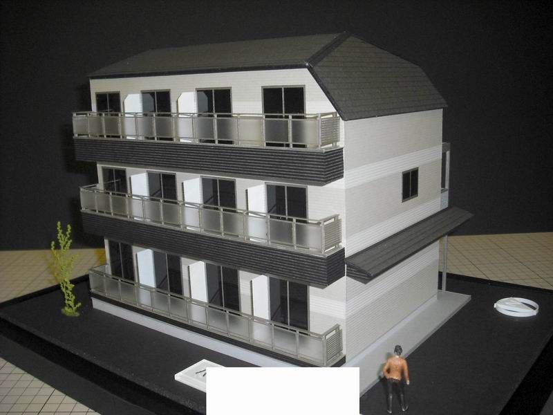 3階建てのカラー外観模型 縮尺1/50 の紹介です。