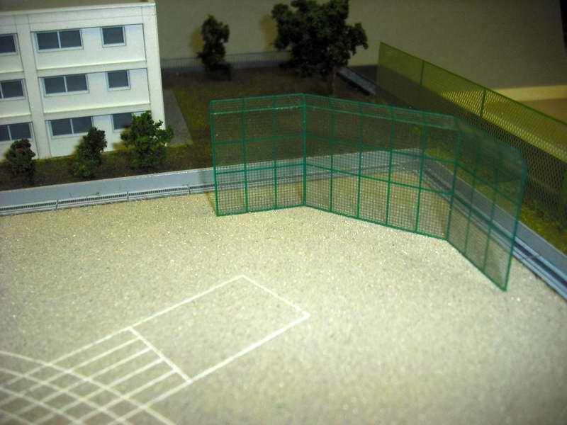 フェンスは0.5mmアクリル板にレーザー彫刻+塗装です。