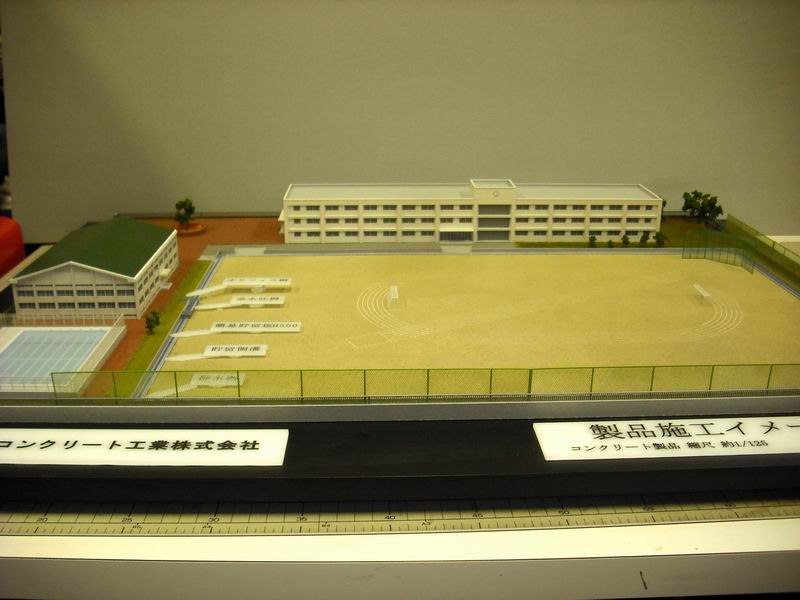 矢作コンクリート工業株式会社様依頼の簡易貯留板等の設置イメージ模型で、コンクリート製品の施工イメージなので製品はオーバースケール(縮尺1/150)で製作しています。