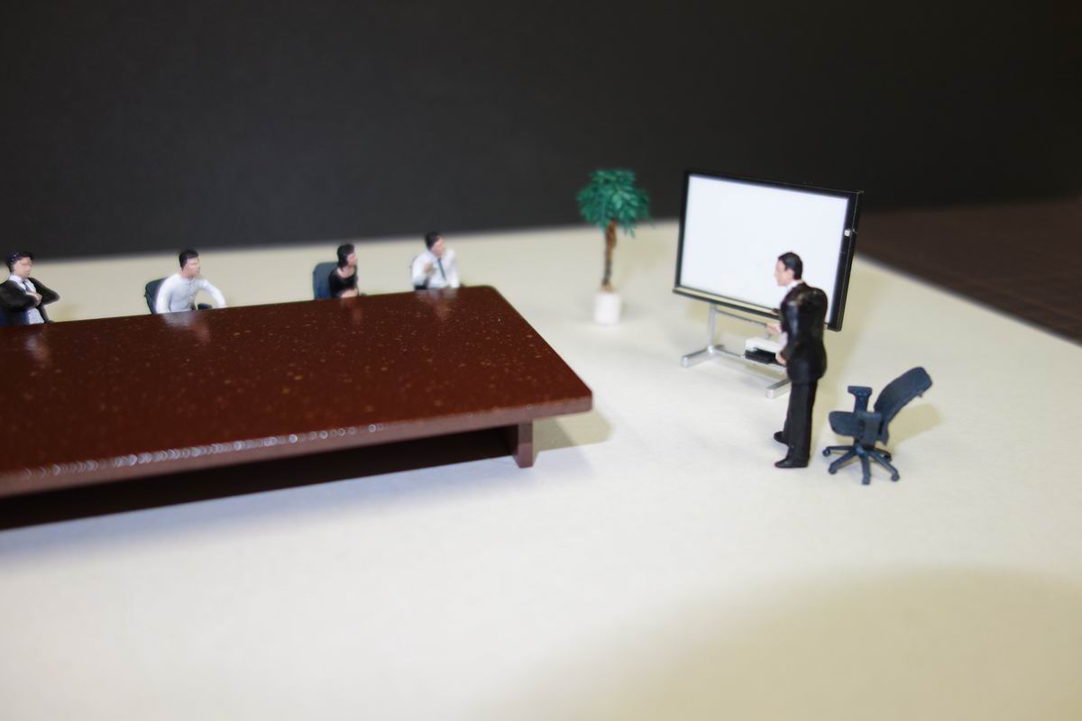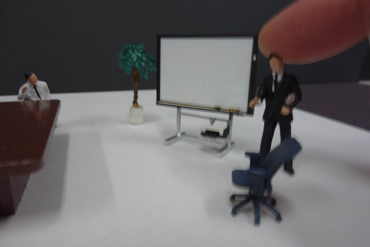 今回制作したのはテーブル・イス・ホワイトボード・観葉植物、それと人形です。