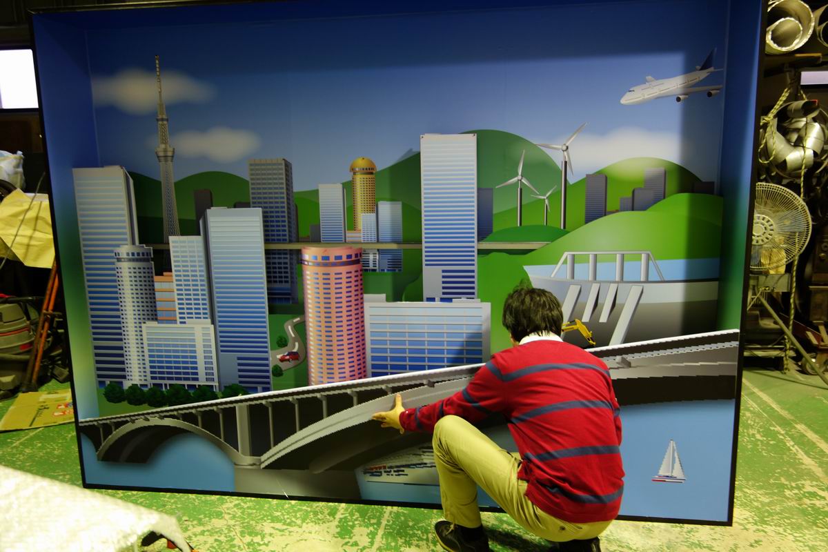 2012年11月04日 建築模型ねっと:イベント用大型模型 幅2m70cm 高さ2m の大型模型です。奥行きはわずか35cm 立体アートに仕上げています。大きくて製作するのも大変でした。弊社の作業場風景軽量化のため、ベニヤ板ではなくバルサ板を使用。各パーツを組み合わせて立体に。弊社の2tトラックで大阪に運搬。イベント会場で設置完了。平面を立体にすることでインパクトが増しますが、今回のように大型にすると迫力がありますね。きっと、お客様の心にも届いたことでしょう。イベント模型から建築模型まで各種プレゼンツールのご用命は下記へ↓↓↓ < 前の記事次の記事 > コメント コメントフォーム 名前 コメント 評価する リセット リセット 顔 星 投稿する 情報を記憶 トラックバック