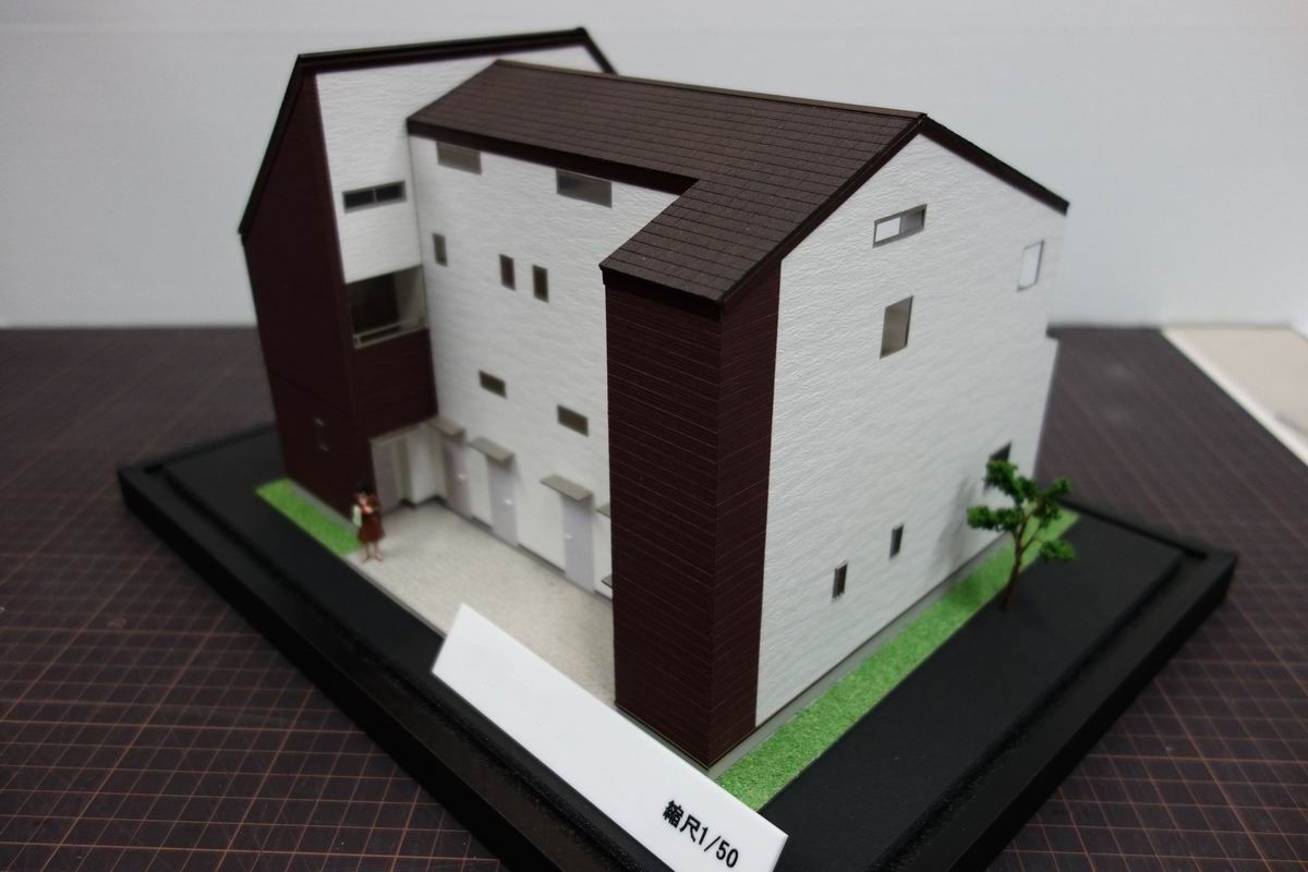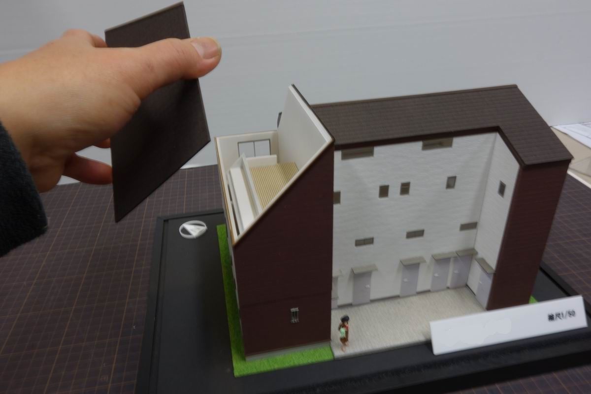 外観はパウダーボードで、ファンシーペーパーに外壁サイディング模様を入れて貼り付けています。