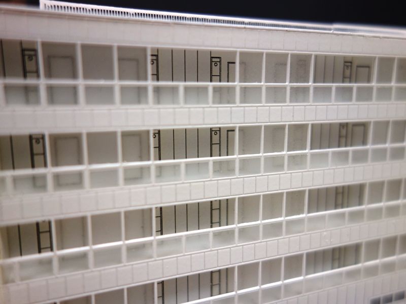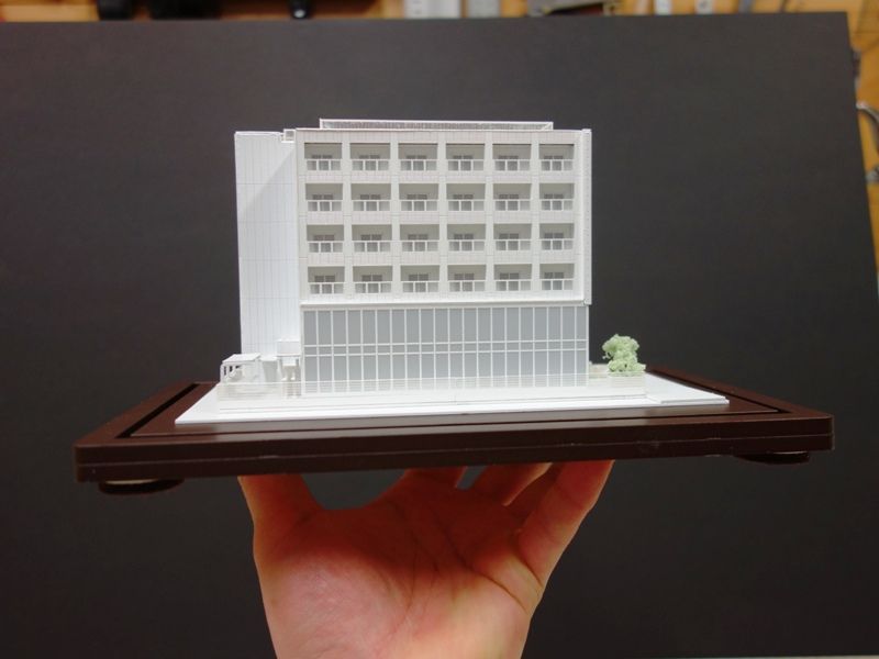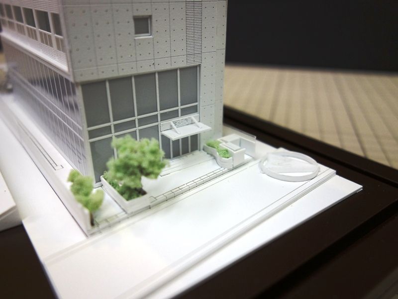 余談ですが最近白色模型をよく作っていますが、悪い言い方かもしれませんが、白色一色というのは、形状が素直に出てくるので、カラー模型のように色でごまかせない分、製作に神経を使うものです。